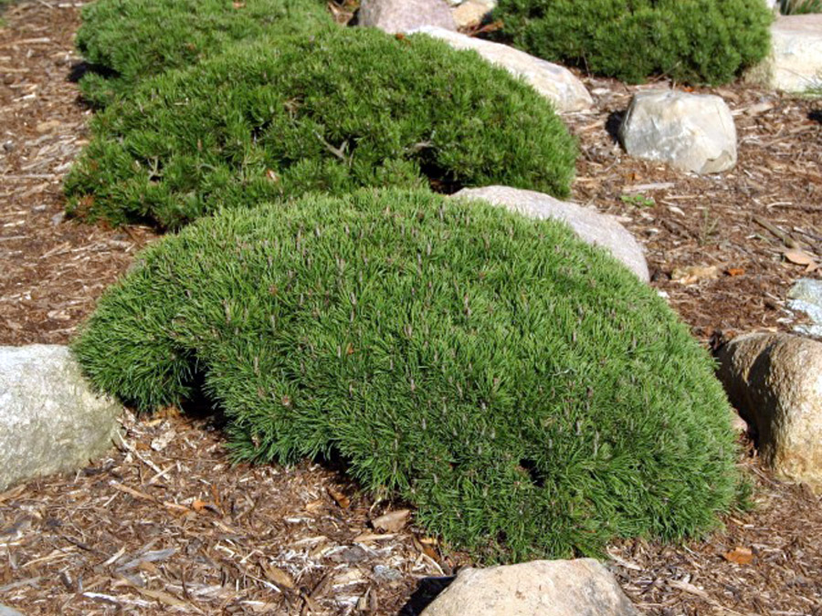 Pinus mugo Pumilio – хвойный низкорослый кустарник, достигающий 1 метра высоты. Крона распростертая, стелющаяся с плотно расположенными побегами, ветви направлены вверх. Растет медленно. Хвоя темно-зеленая, игольчатая, короткая. Pinus mugo Pumilio мало требовательна к почве и влаге, морозостойка, светолюбива, но выносит затенение. Нами используется при озеленении для каменистых садов.
