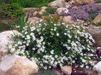 Potentilla - листопадный кустарник, высотой от 20 сантиметров до 1-1.5 метра. Образуют пышную крону: листья сложные, ажурные, густо усеивают побеги. Цветки белые, кремовые, желтые, желто-оранжевые, красные. Плоды – семянки. Potentilla fruticosa Abbotswood - невысокий кустарник высотой не более 50 сантиметров. У potentilla fruticosa Abbotswood пышная, раскидистая крона до 1 метра в диаметре. Potentilla fruticosa Abbotswood медленно растет. Листья светло-зеленые, снизу сизые. Цветки у potentilla fruticosa Abbotswood белые, до 4 сантиметра величиной, многочисленные, одиночные или собраны в кисти. Цветет potentilla fruticosa Abbotswood с июня по октябрь. Она относится к лучшим сортам с белыми цветами. Широко используется в озеленении в качестве невысоких живых изгородей. Благодаря обильному длительному цветению позволяет создавать цветовые пятна на траве. Potentilla fruticosa Abbotswood неприхотлива, морозостойка.